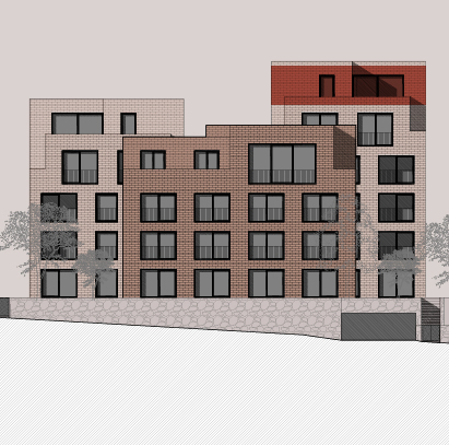 Architektura logické geometrie využívá ušlechtilé nadčasové materiály. Zvenčí je to primárně režné zdivo, které zajišťuje vizuální propojení všech tří bytových domů uzavřeného rezidenčního komplexu.